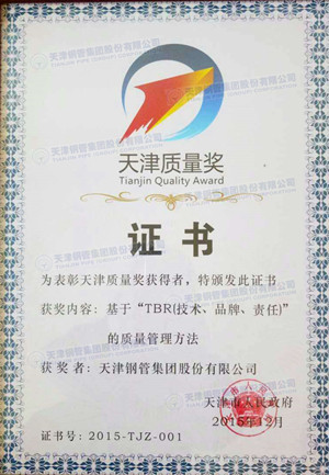 天津鋼管公司榮獲首屆天津質量獎